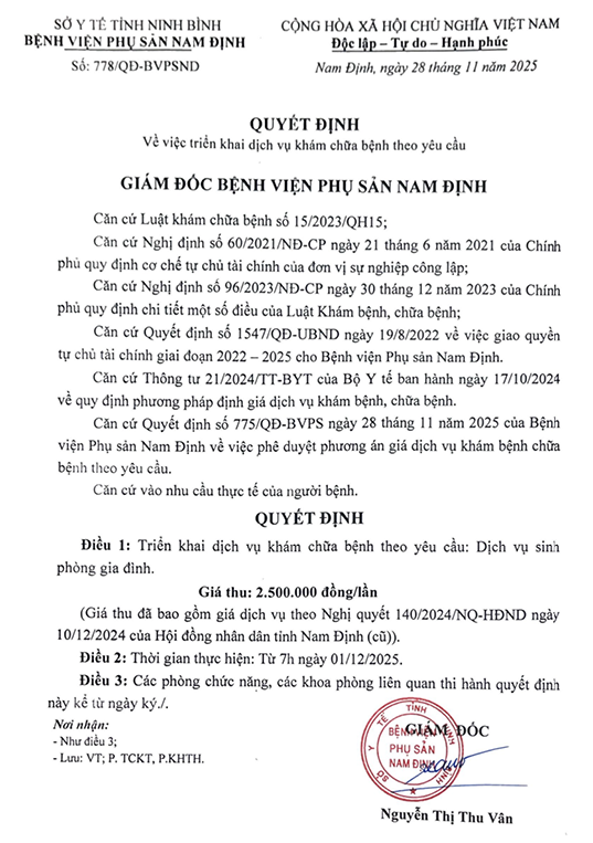 BỆNH VIỆN PHỤ SẢN NAM ĐỊNH THÔNG BÁO