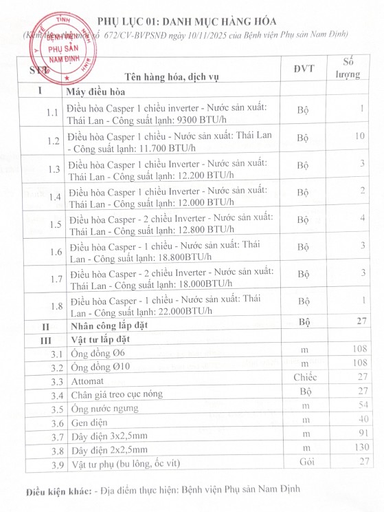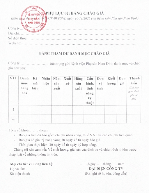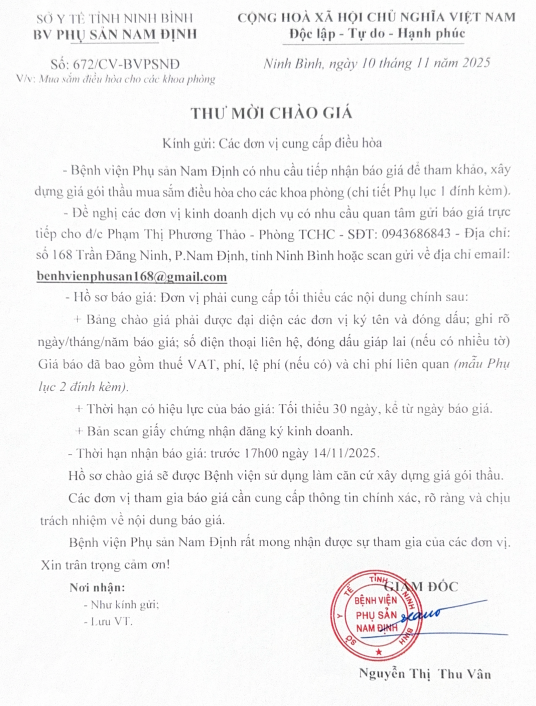 Thư Mời Chào Giá Mua Điều Hòa Các Khoa Phòng