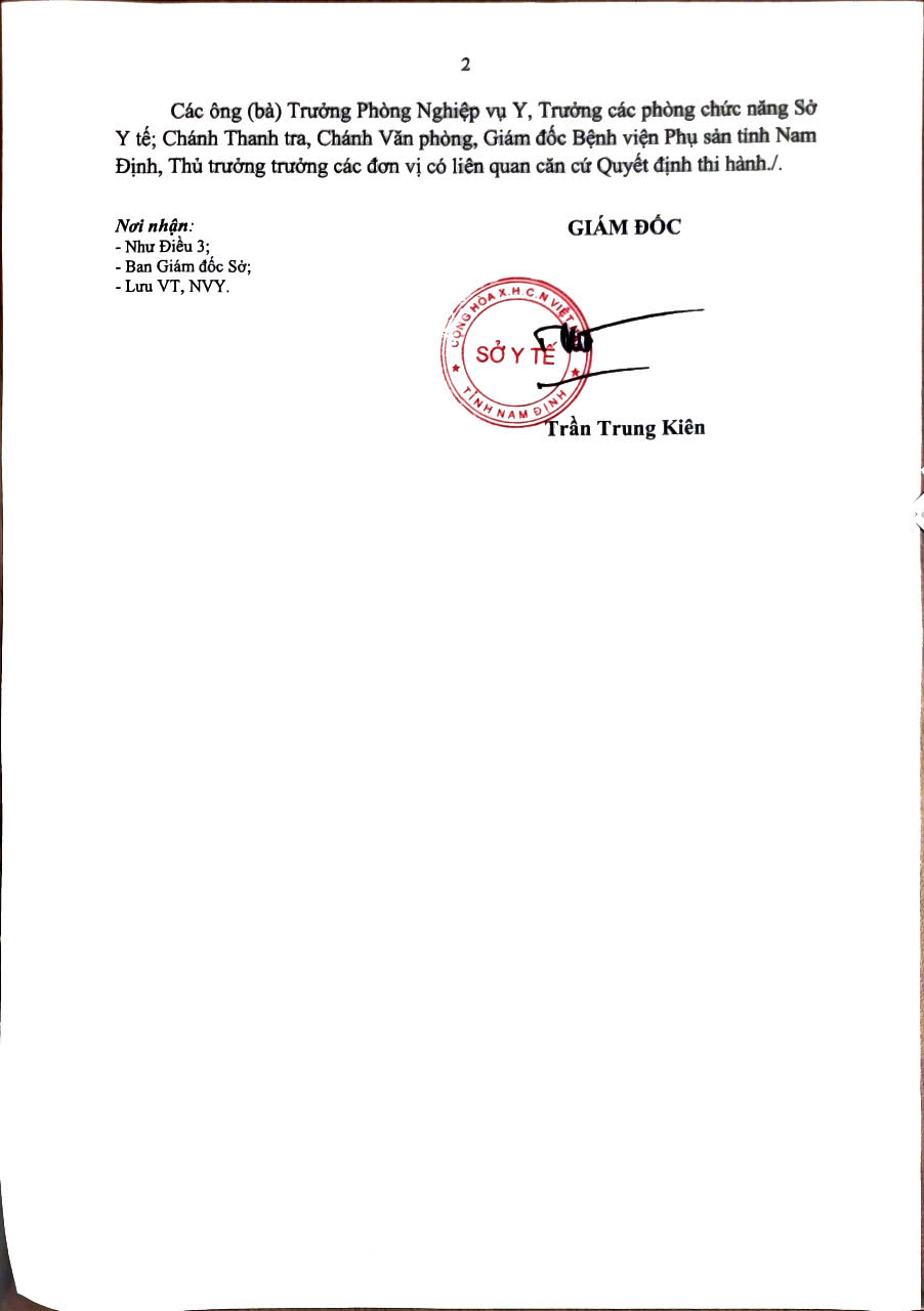 đối với Bệnh viện Phụ sản tỉnh Nam Định
